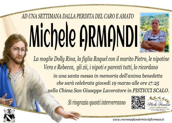 Le mie più sentite condoglianze per la scomparsa del caro Michele che il Signore lo accolga tra le sue braccia R. I. P.