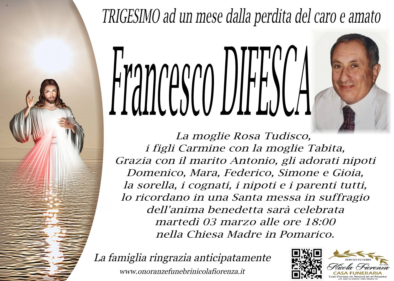 I familiari ringraziano anticipatamente tutti coloro che parteciperanno alla cerimonia funebre