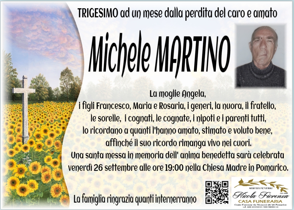 Le mie più sentite condoglianze per la scomparsa del caro Michele che il Signore lo accolga tra le sue braccia R. I. P.