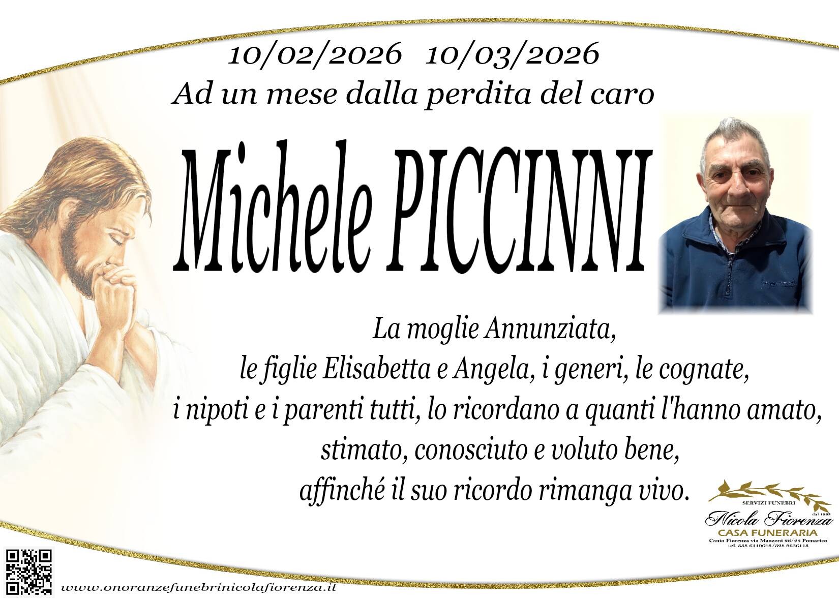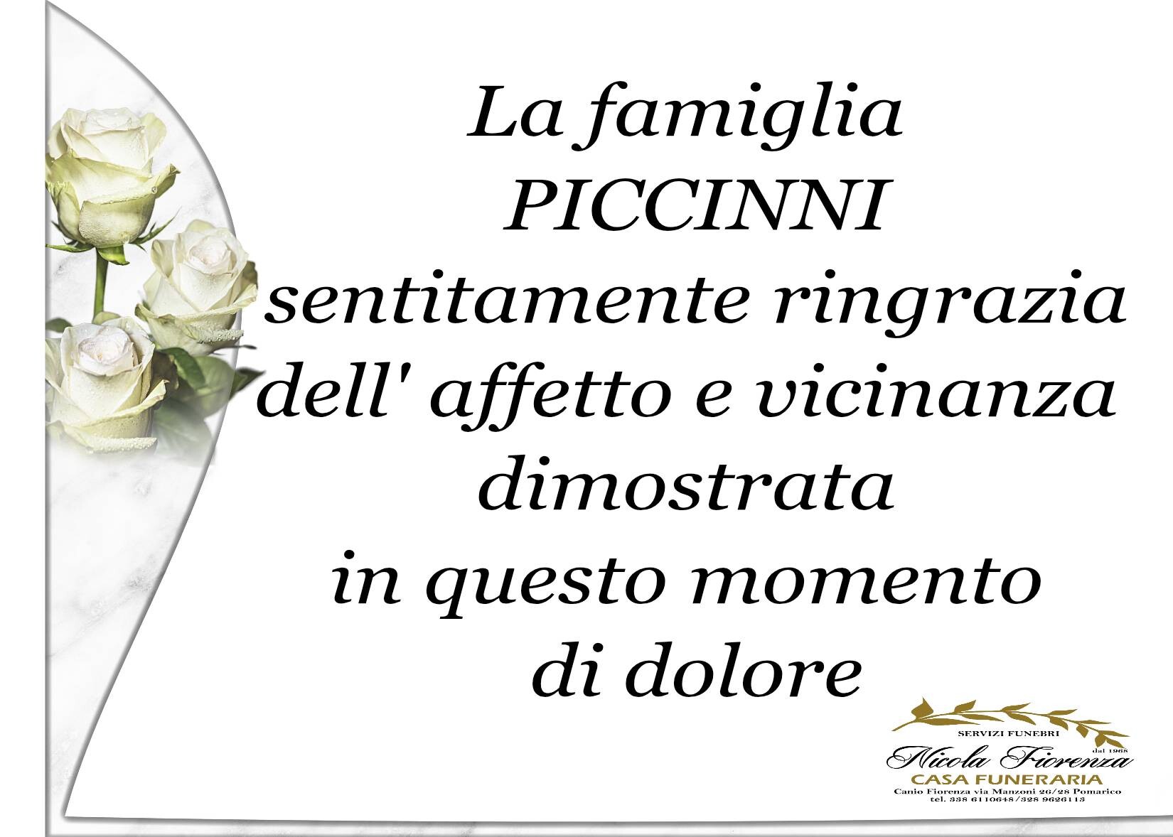 I familiari ringraziano anticipatamente tutti coloro che parteciperanno alla cerimonia funebre e tutti coloro che scriveranno con affetto un Pensiero di Ricordo.