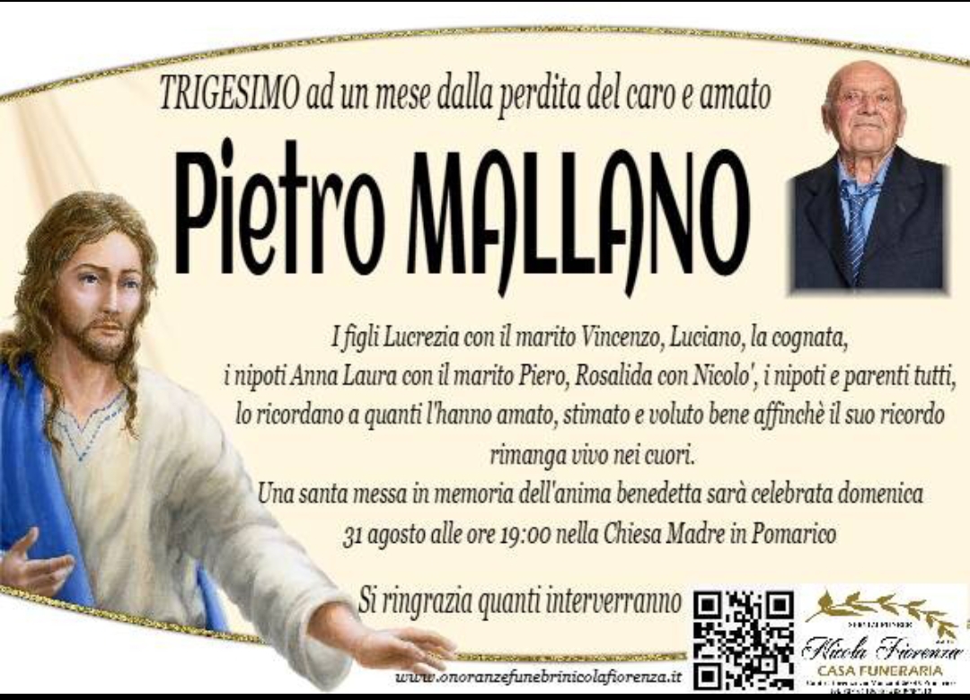 <p style="text-align:center">I familiari <strong>ringraziano</strong> anticipatamente tutti coloro che <strong>parteciperanno</strong> alla cerimonia funebre<br /> e tutti coloro che <strong>scriveranno</strong> con <strong>affetto</strong> un <strong>Pensiero di Ricordo</strong>.</p>